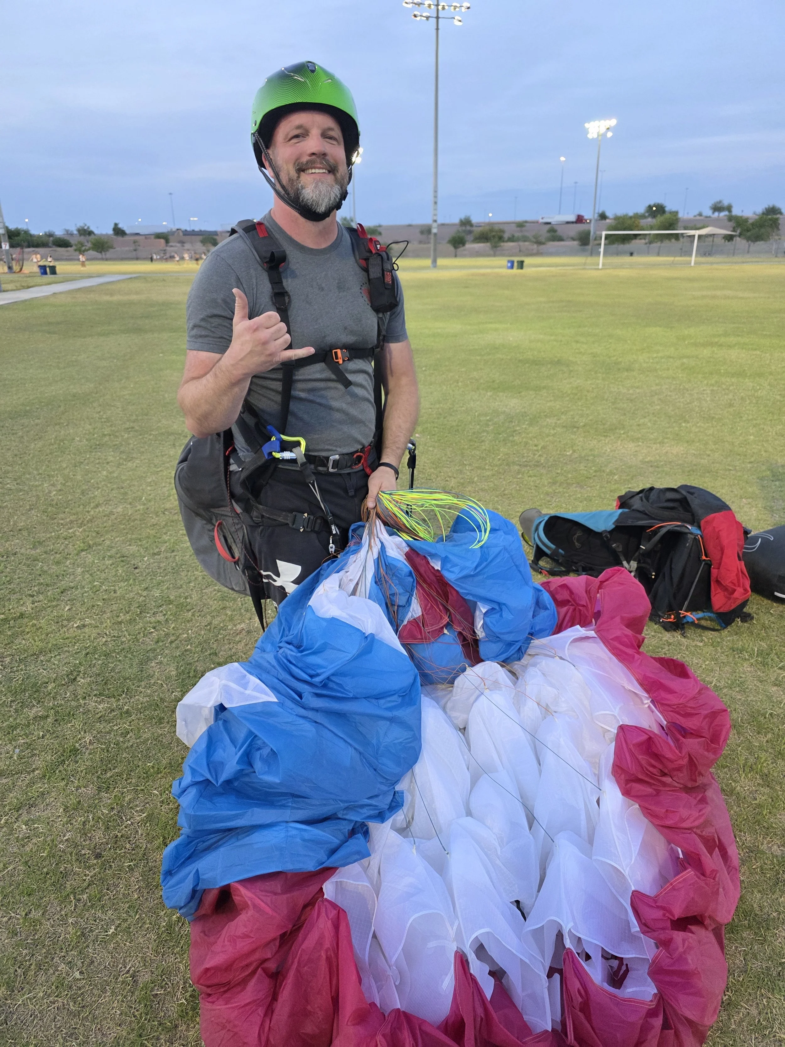 Click the following link for “Need to knows - Safety First - FAQ’s” AND CALL ME for free advice that’s culminated from 25 years of being coached in the sport and cultivating a long list of people that are now paragliders. You will hang up being FULLY informed on everything you need to know for you to decide if this sport is for you. You will also know your choices and a REALISTIC to the dollar amount EVERYTHING is going to cost you to be out there flying with your rating. I do not push sales in paragliding and want to get you to sign up before you know what everyone should know. I want you to have a great experience. Call anytime.